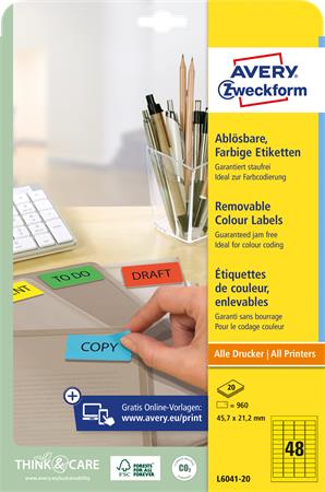 Etikett, univerzális, 45,7x21,2 mm, eltávolítható, kerekített sarkú, AVERY ZWECKFORM, 960 etikett/csomag, sárga