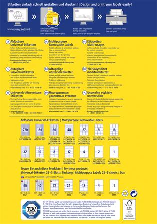 Etikett, univerzális, eltávolítható, 35,6x16,9 mm, AVERY ZWECKFORM, 2400 etikett/csomag